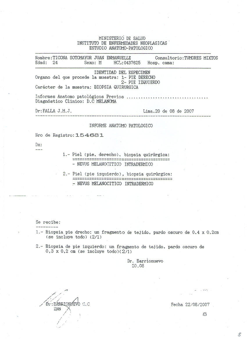 Melanoma en ambos pies (Nevus Melanocito intradérmico).