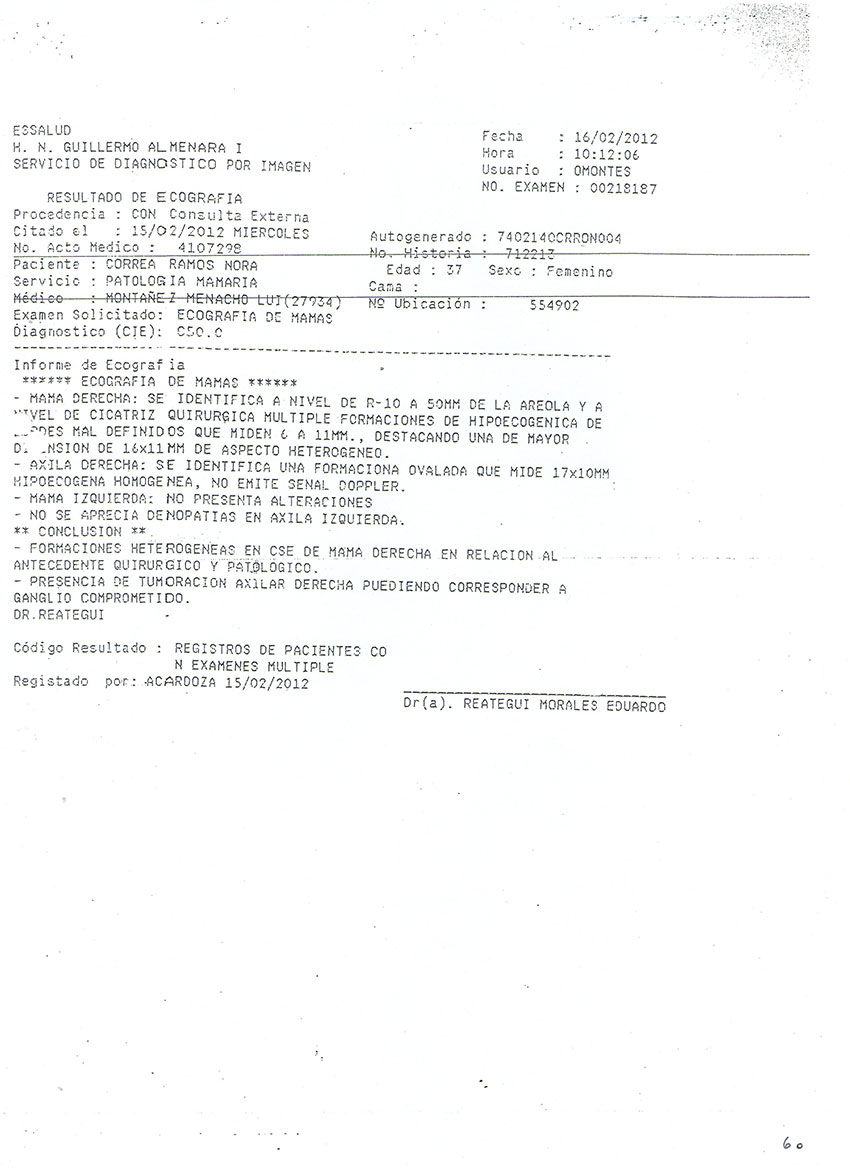 Nota: En este caso primero hizo el tratamiento médico oncológico luego se completó el tratamiento con la Medicina Natural.
